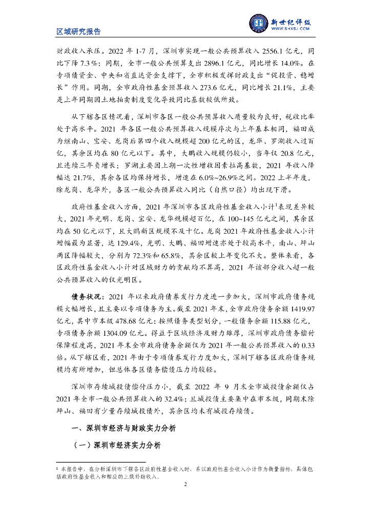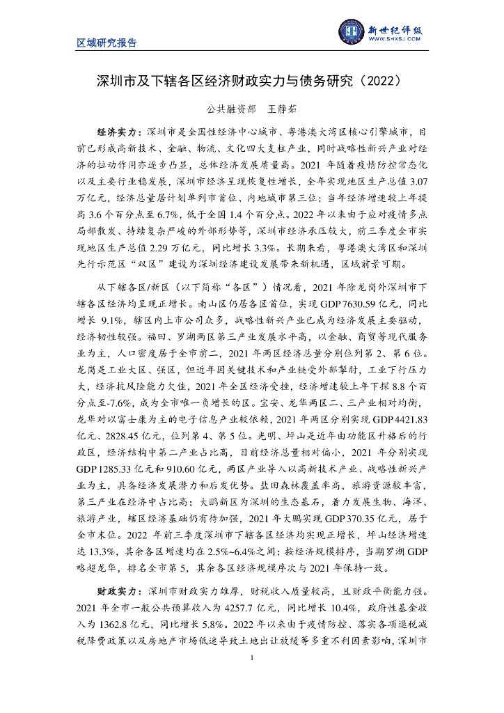 新世纪评级:深圳市及下辖各区经济财政实力与债务研究(2022).pdf