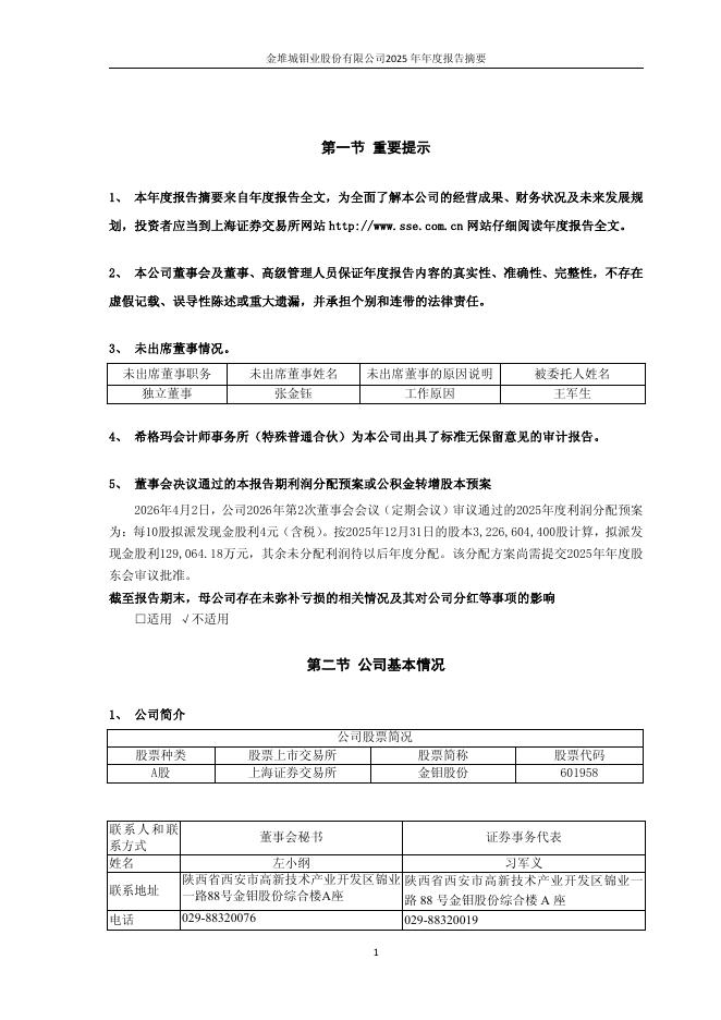601958-金钼股份:金钼股份2025年年度报告摘要.pdf