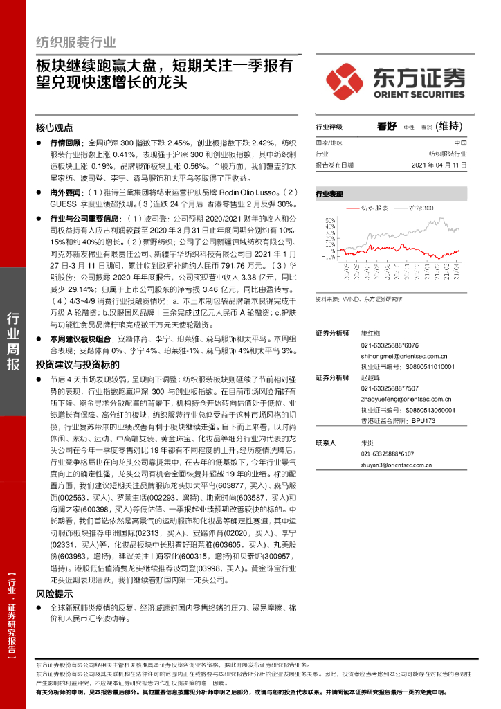 东方证券:纺织服装行业周报:板块继续跑赢大盘,短期关注一季报有望兑现快速增长的龙头.pdf