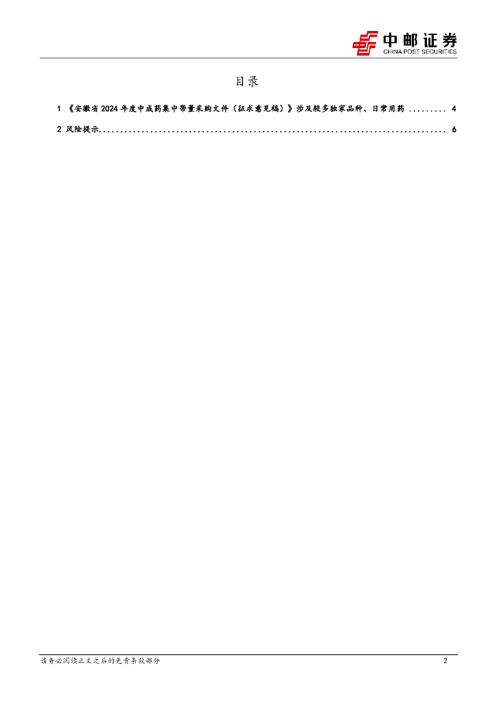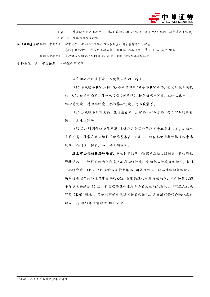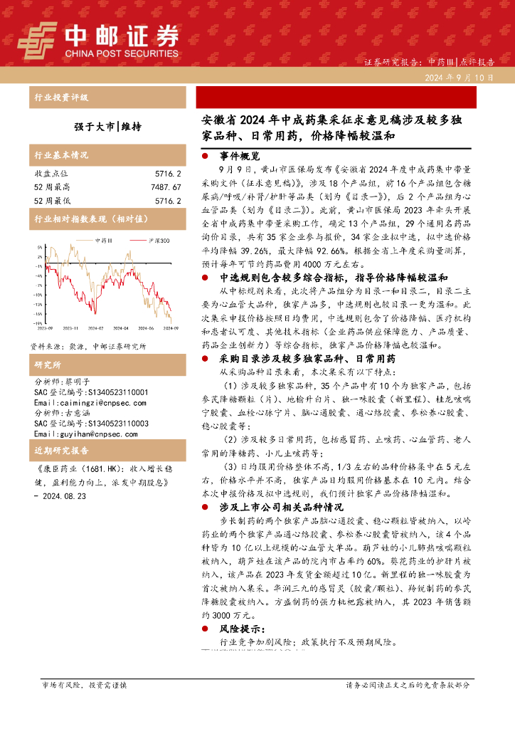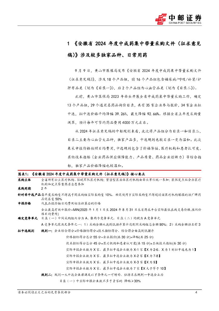 中邮证券:中药Ⅲ:安徽省2024年中成药集采征求意见稿涉及较多独家品种、日常用药,价格降幅较温和.pdf