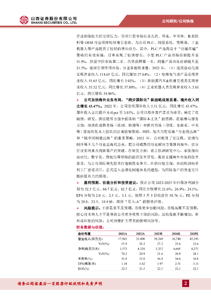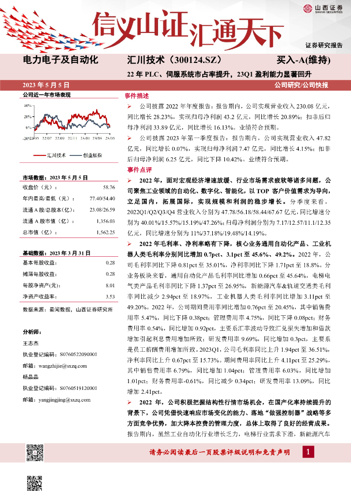 山西证券:汇川技术(300124)-22年PLC、伺服系统市占率提升,23Q1盈利能力显著回升.pdf
