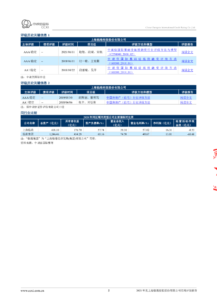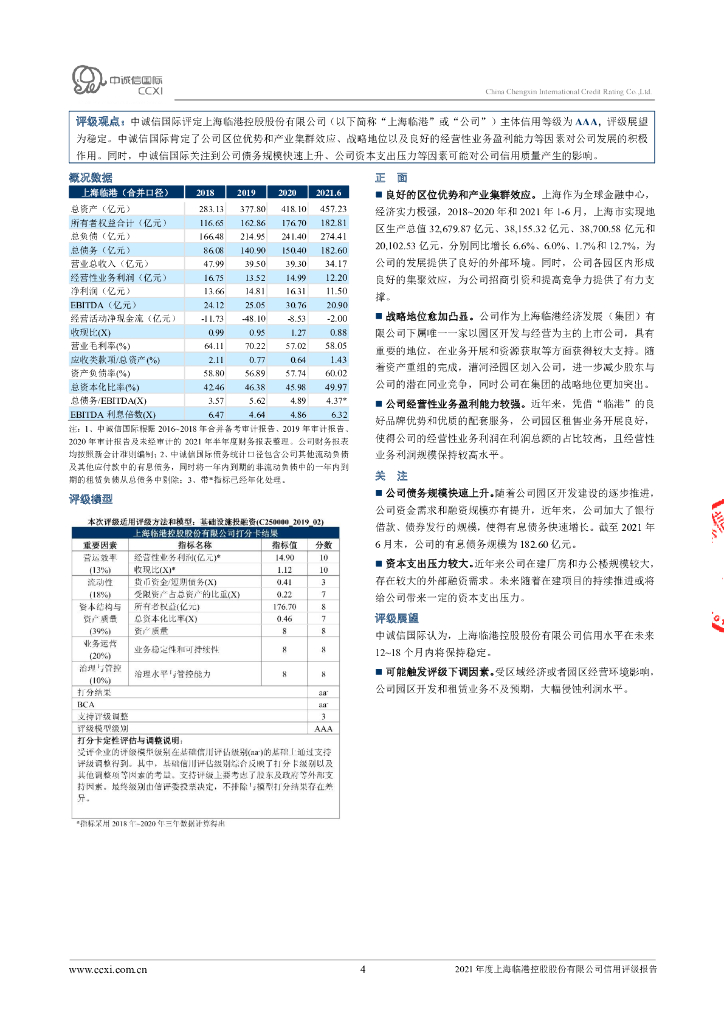 中诚信:2021年度上海临港控股股份有限公司信用评级报告.pdf