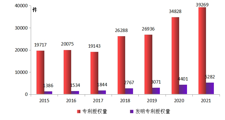 全年专利授权39269件,其中发明5282件,比上年增长20.0%。全年实现技术交易额115.81亿元。