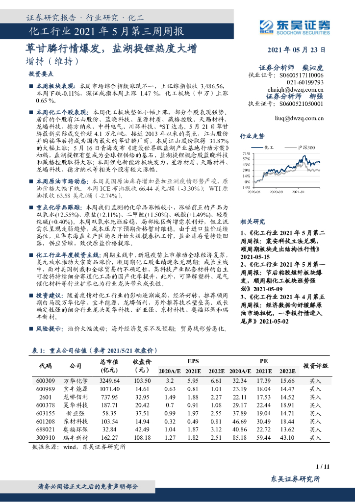 东吴证券:化工行业2021年5月第三周周报:草甘膦行情爆发,盐湖提锂热度大增.pdf