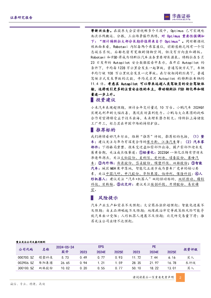 华鑫证券:汽车行业周报:三家造车新势力发布2024Q1财报,特斯拉上海储能工厂正式开工.pdf
