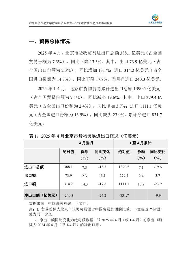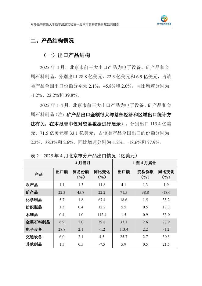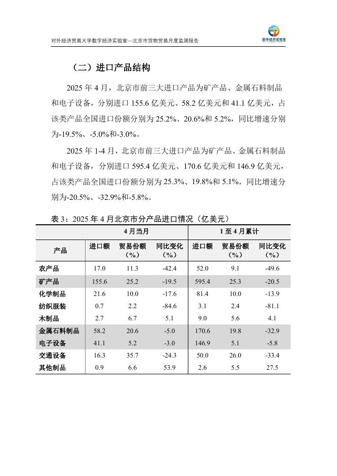 对外经济贸易大学:北京市货物贸易月度监测报告(2025年1-4月).pdf