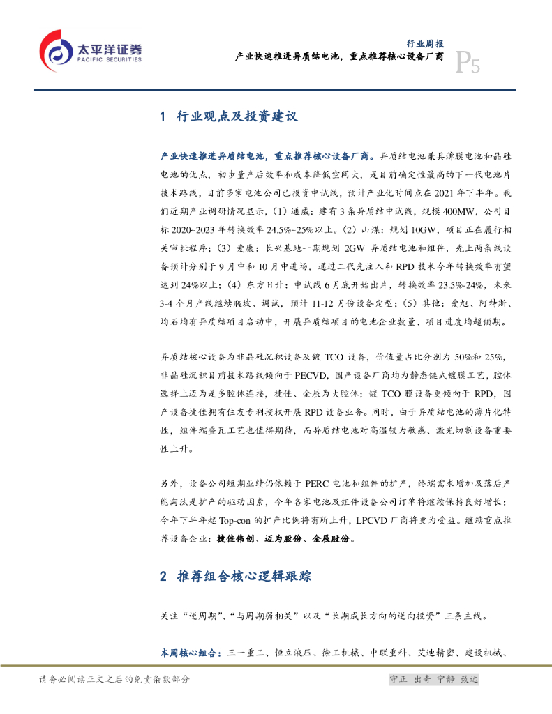 太平洋证券:机械行业周报:产业快速推进异质结电池,重点推荐核心设备厂商.pdf