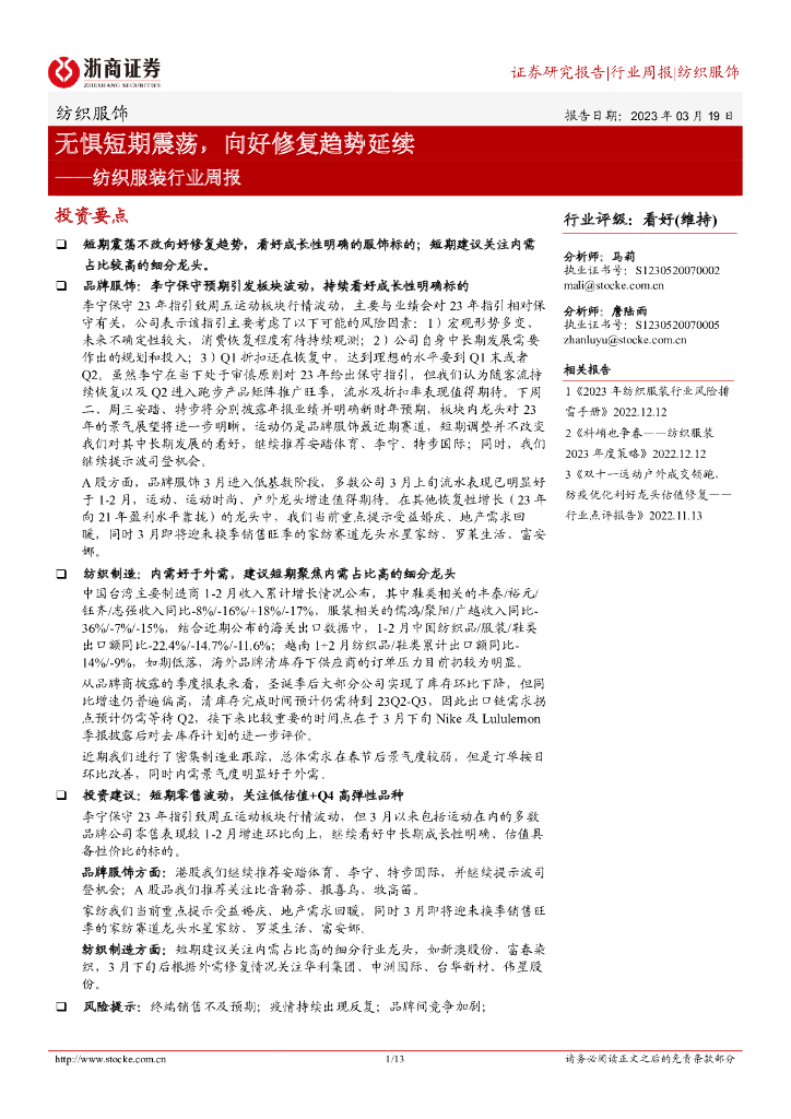 浙商证券:纺织服装行业周报:无惧短期震荡,向好修复趋势延续.pdf