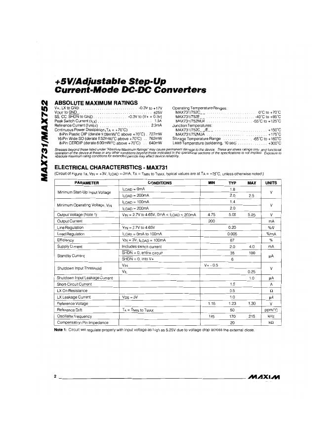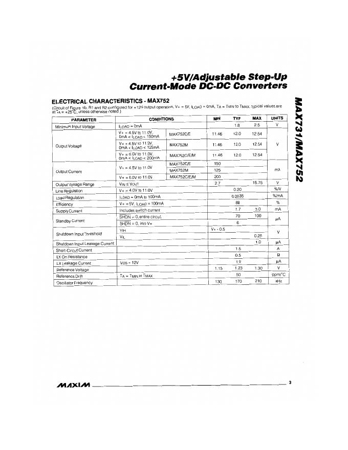 MAXIM MAX731/MAX752 +5V/Adjustable Strp-Up Current-Mode DC-DC Converters 说明书