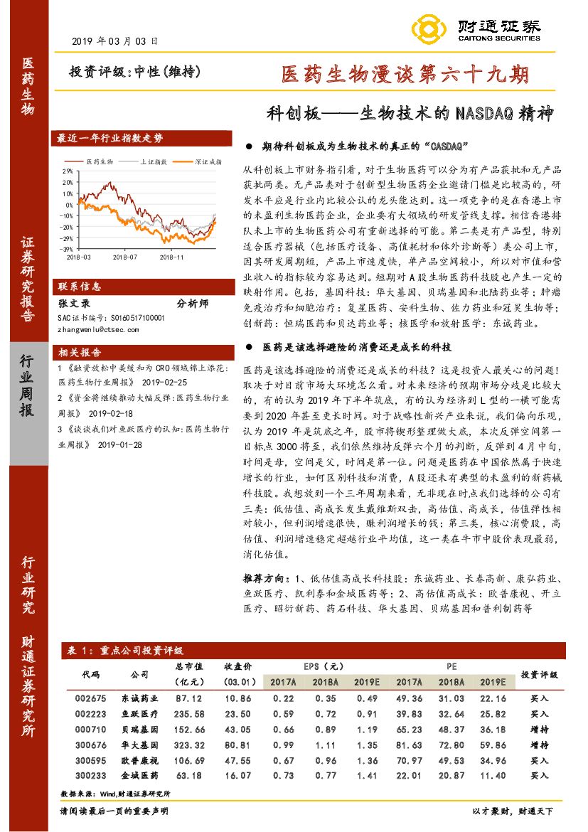 财通证券:医药生物漫谈第六十九期:科创板——生物技术的NASDAQ精神.pdf