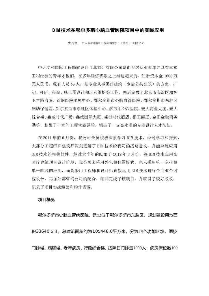 BIM技术在鄂尔多斯心脑血管医院项目中的实践应用.doc
