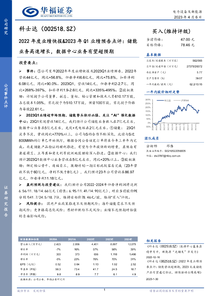 华福证券:科士达(002518)-2022年度业绩快报&2023年Q1业绩预告点评:储能业务高速增长,数据中心业务有望超预期.pdf