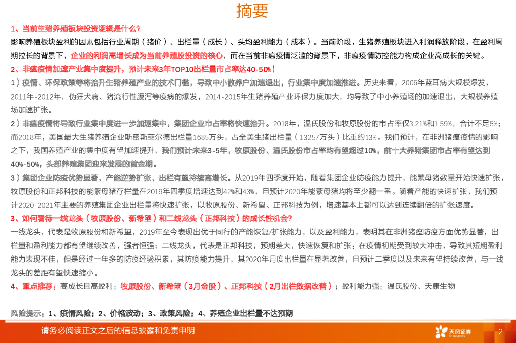 天风证券:农林牧渔行业专题研究:当前推荐生猪养猪板块的核心逻辑是什么?.pdf