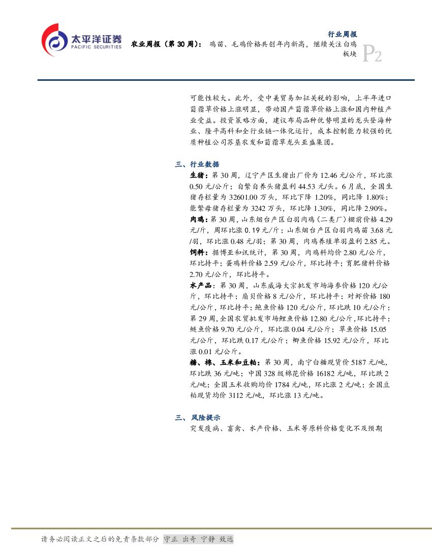 太平洋证券:农业周报(第30周):鸡苗、毛鸡价格共创年内新高,继续关注白鸡板块.pdf