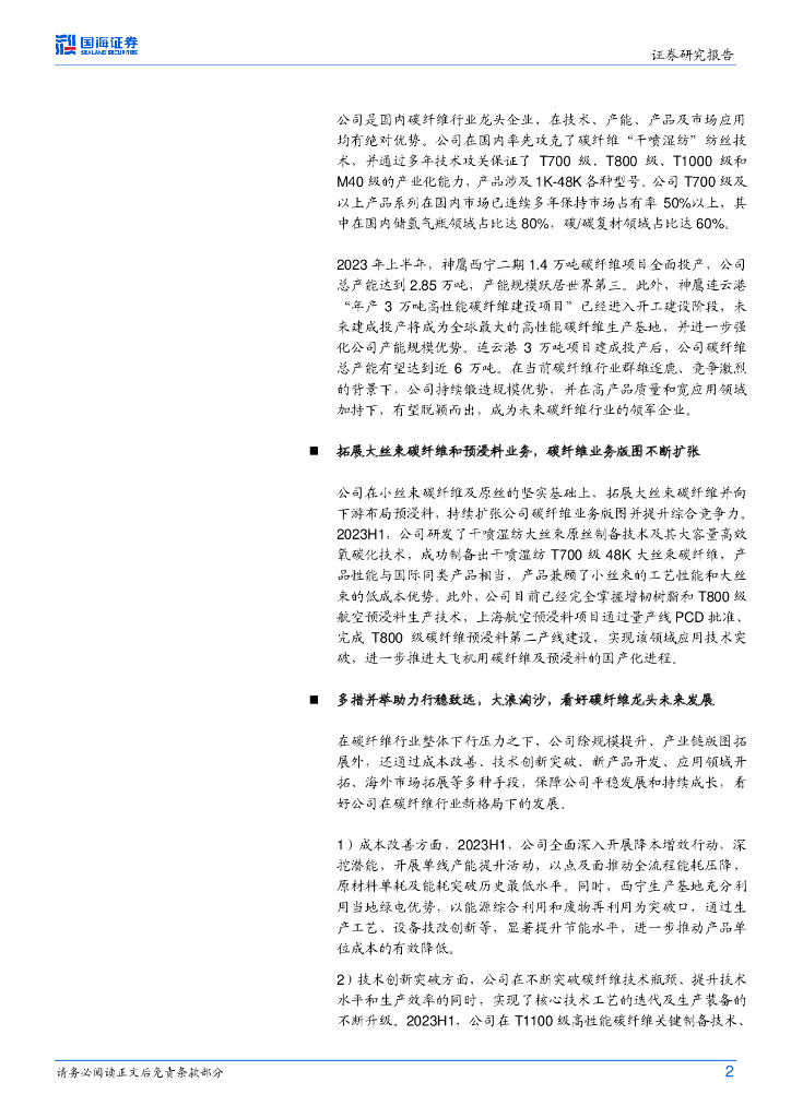 国海证券:中复神鹰(688295)-2023年中报点评报告:碳纤维行业下行致业绩承压,看好龙头效应持续强化带来的新发展.pdf