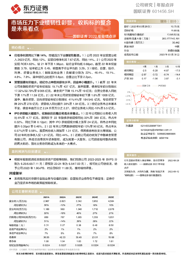 东方证券:国联证券2022年业绩点评:市场压力下业绩韧性彰显,收购标的整合是未来看点.pdf