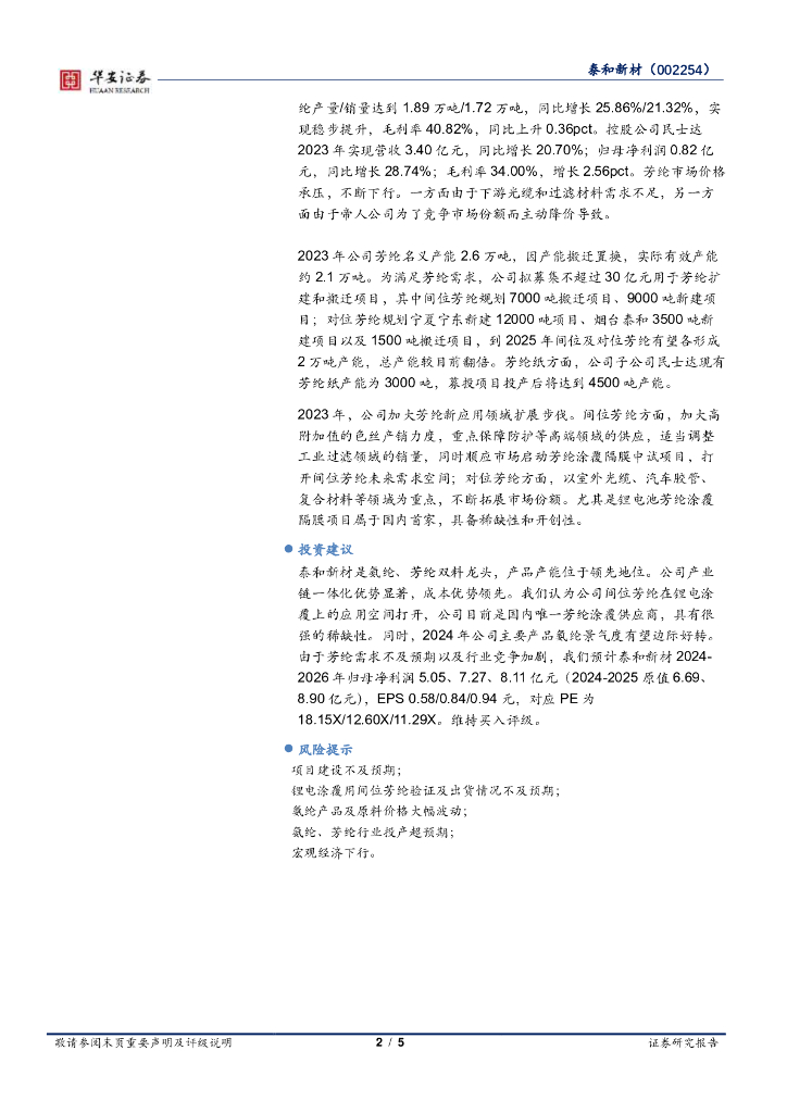 华安证券:泰和新材(002254)-氨纶行业短期承压,芳纶产品盈利稳健.pdf