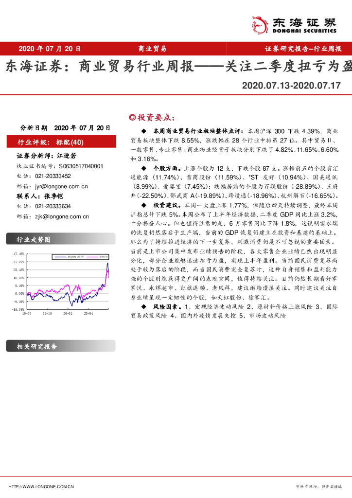 东海证券:商业贸易行业周报:关注二季度扭亏为盈.pdf