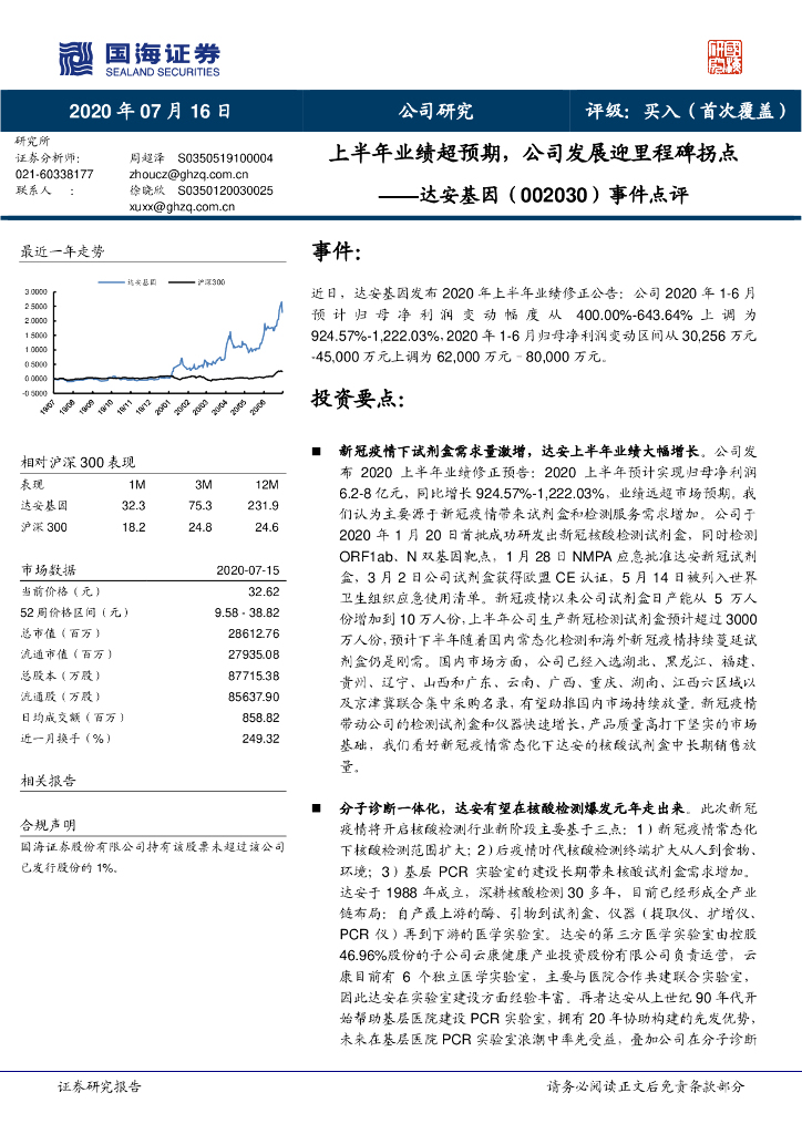 国海证券:达安基因(002030)-事件点评:上半年业绩超预期,公司发展迎里程碑拐点.pdf