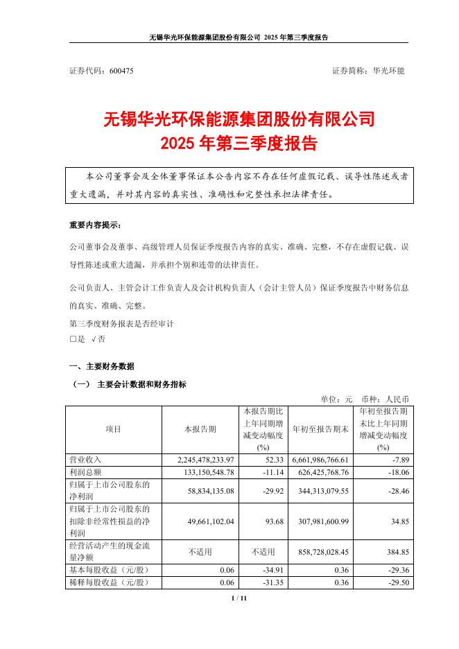 600475-华光环能:无锡华光环保能源集团股份有限公司2025年第三季度报告.pdf