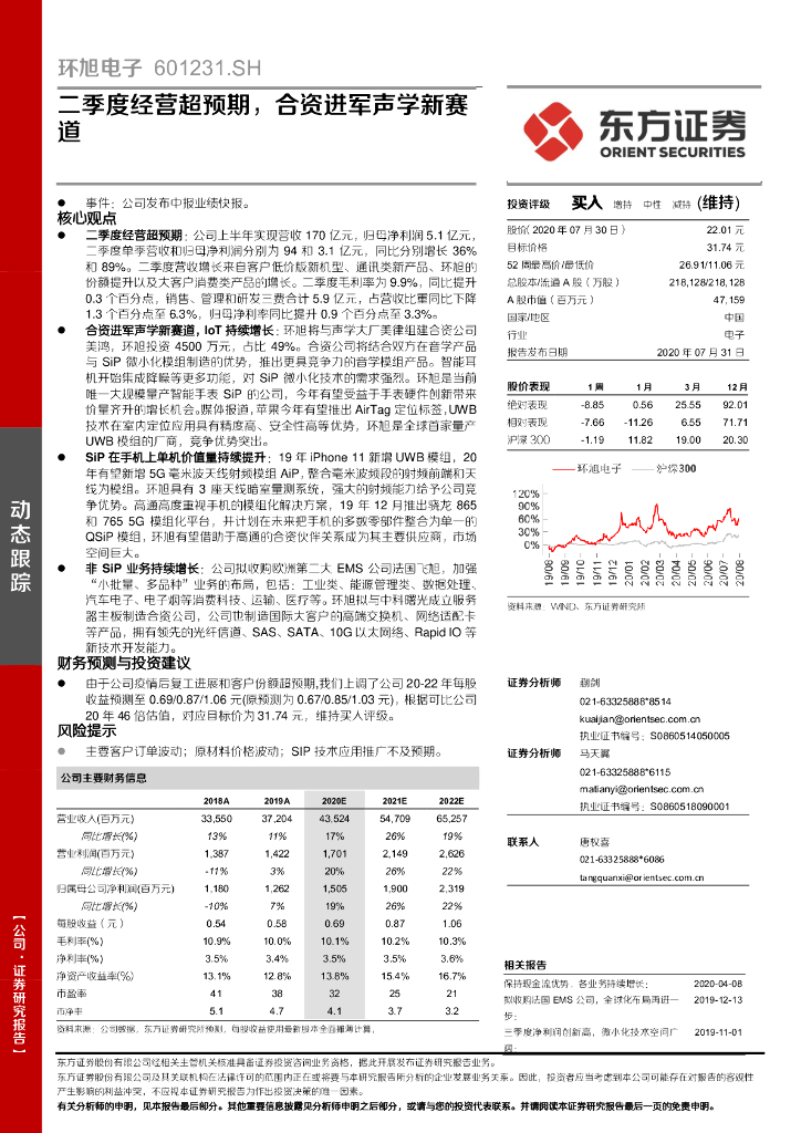 东方证券:环旭电子(601231)-二季度经营超预期,合资进军声学新赛道.pdf