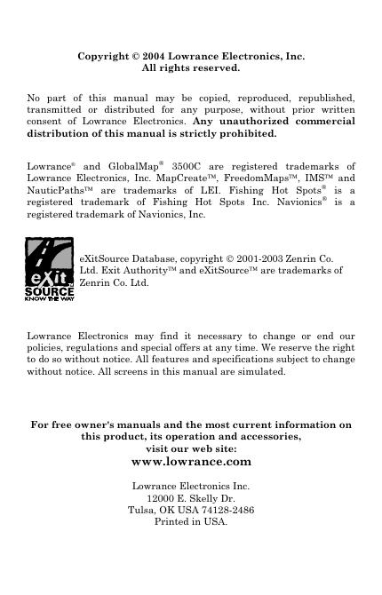 Lowrance GlobalMap 3500C Mapping GPS Receiver Operation Instructions.pdf