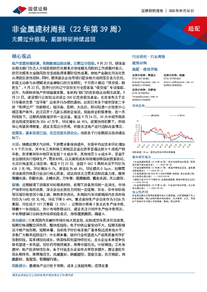 国信证券:非金属建材周报(22年第39周):无需过分悲观,底部特征持续显现.pdf