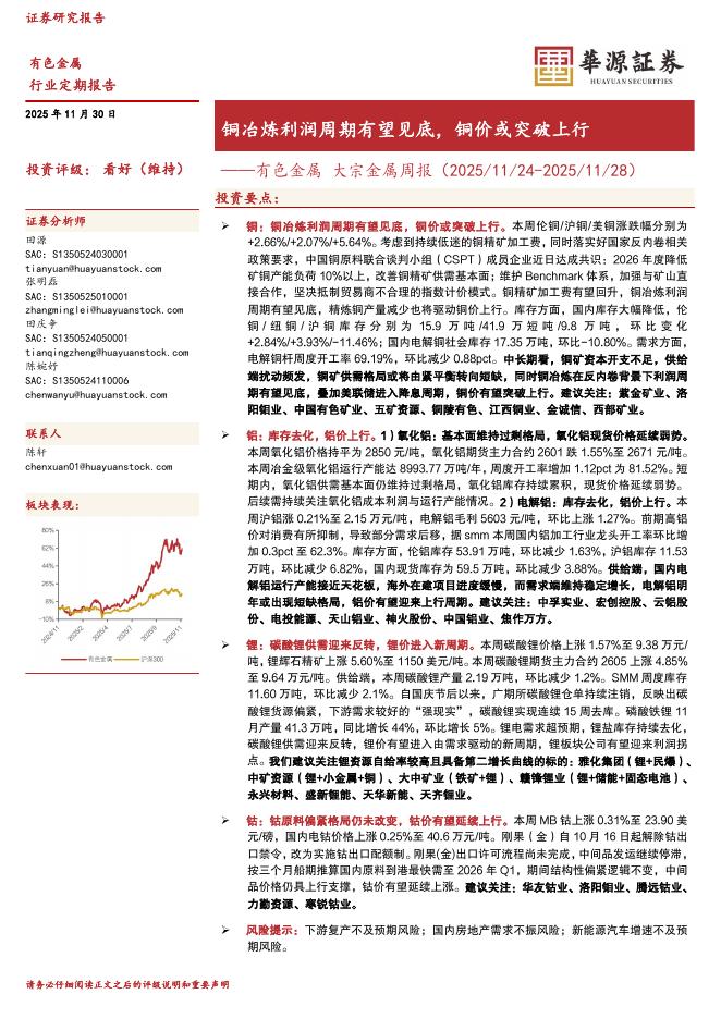 华源证券:有色金属大宗金属周报:铜冶炼利润周期有望见底,铜价或突破上行.pdf