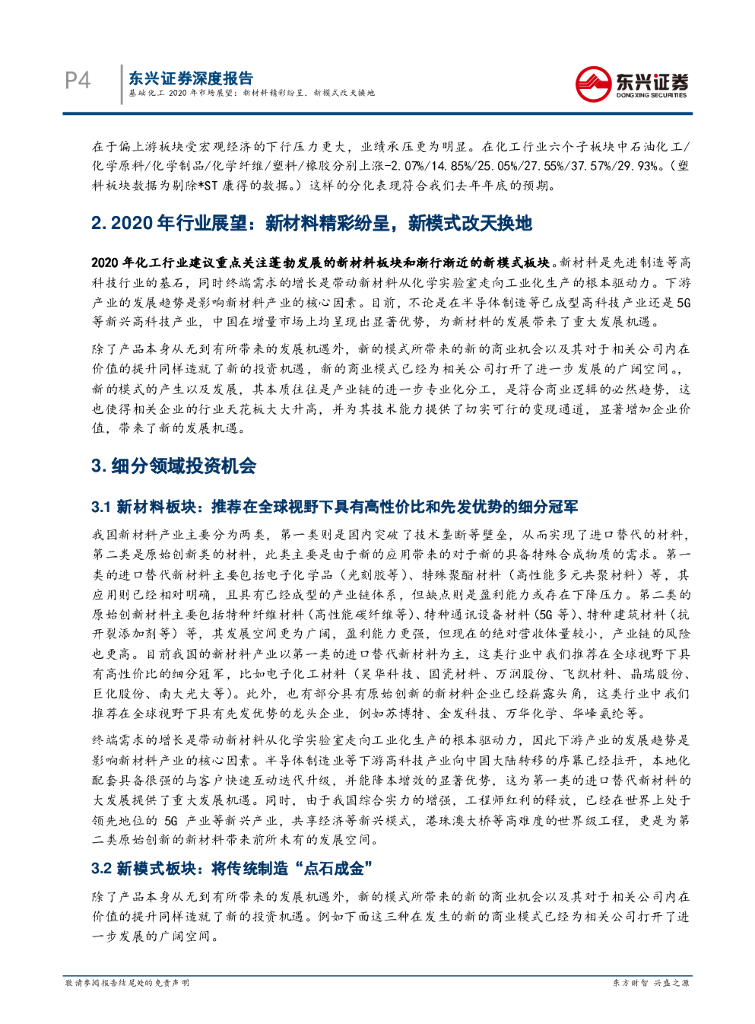 东兴证券:基础化工2020年市场展望:新材料精彩纷呈,新模式改天换地.pdf