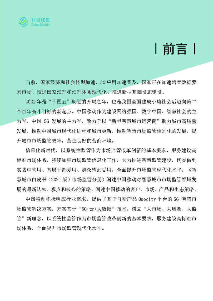 中国移动:5G新型智慧城市白皮书(2021版)市场监管数字化分册.pdf