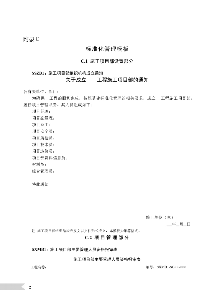 公司施工项目部标准化管理表格模板.doc