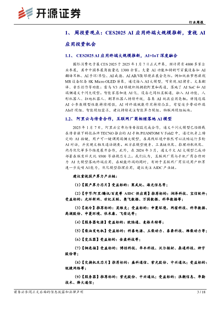 开源证券:通信行业周报:CES2025AI应用终端大规模推新,重视AI应用投资机会.pdf