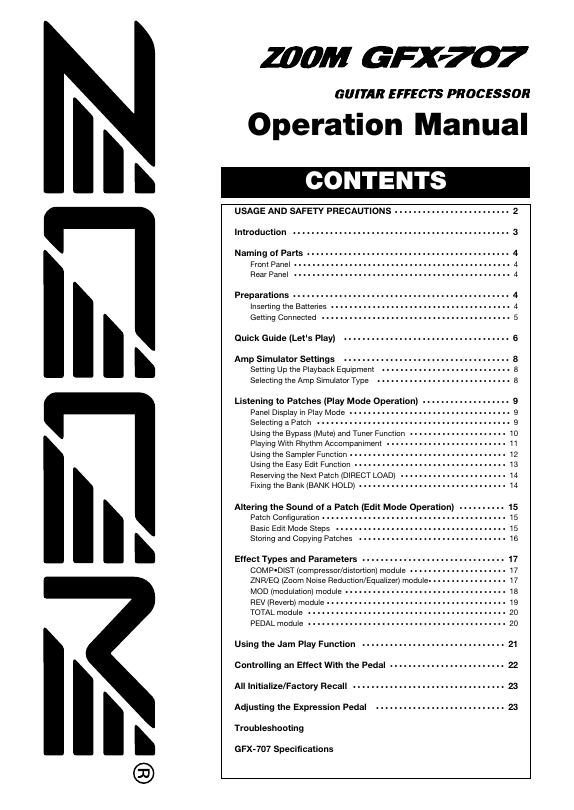 ZOOM GFX-707 GUITAR EFFECTS PROCESSOR 操作手册.pdf