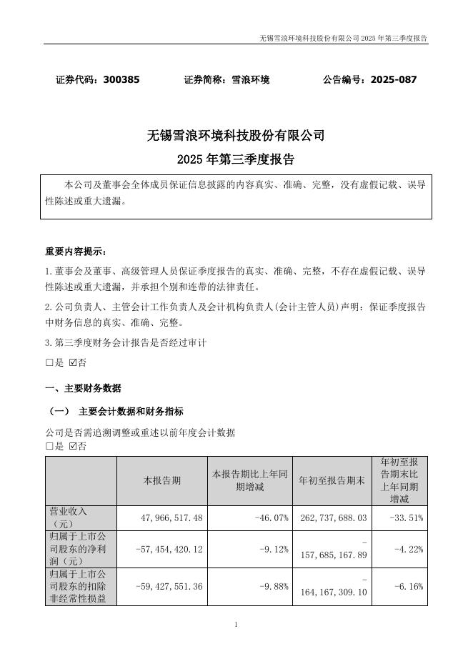300385-雪浪环境:2025年三季度报告.pdf