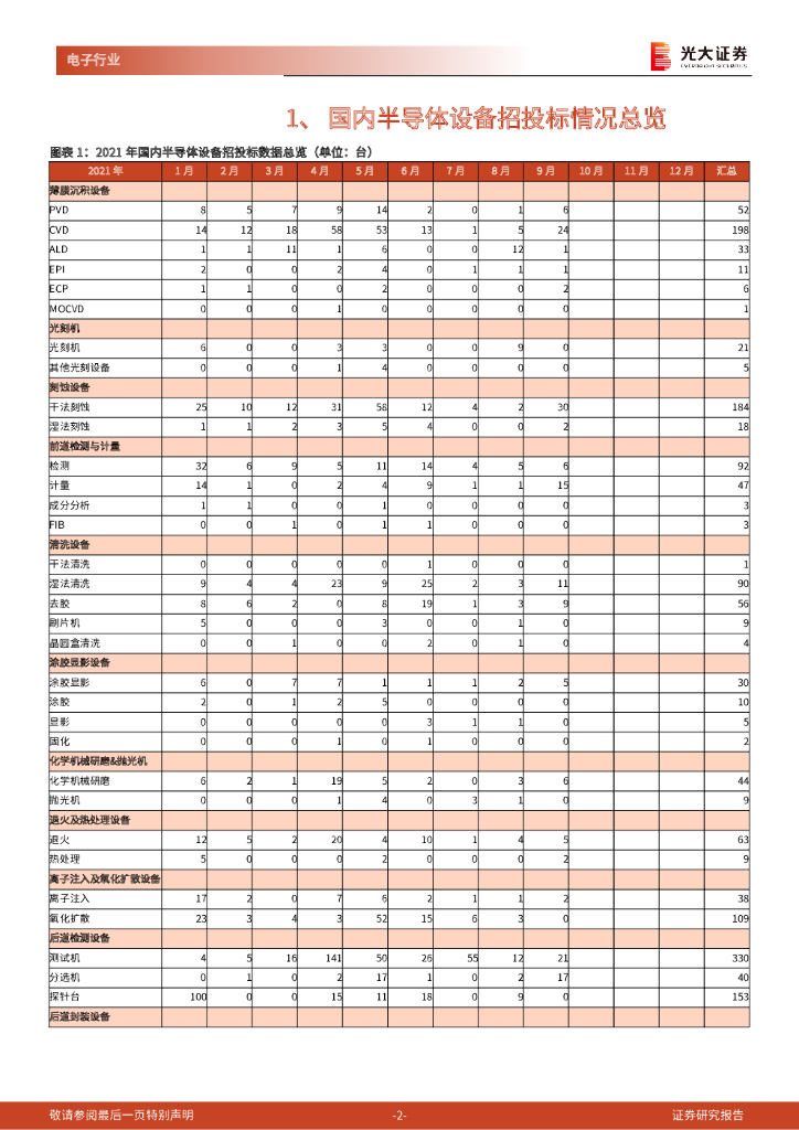 光大证券:电子行业研究国内半导体设备招投标月度数据跟踪第4期(2021年10月):中微公司干法刻蚀机台中标量上升.pdf