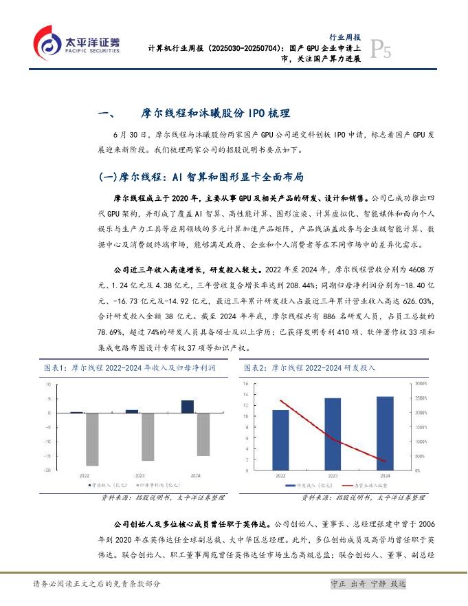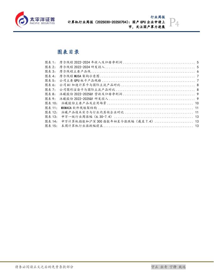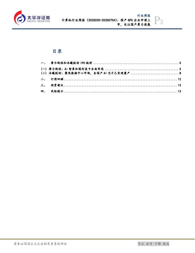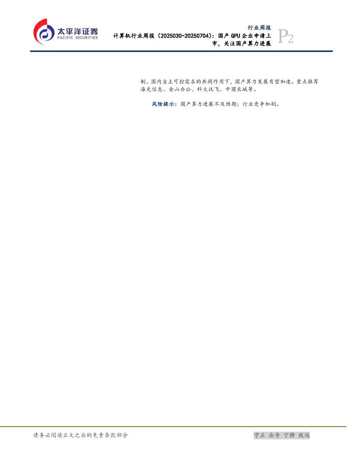 太平洋证券:计算机行业周报:国产GPU企业申请上市,关注国产算力进展.pdf