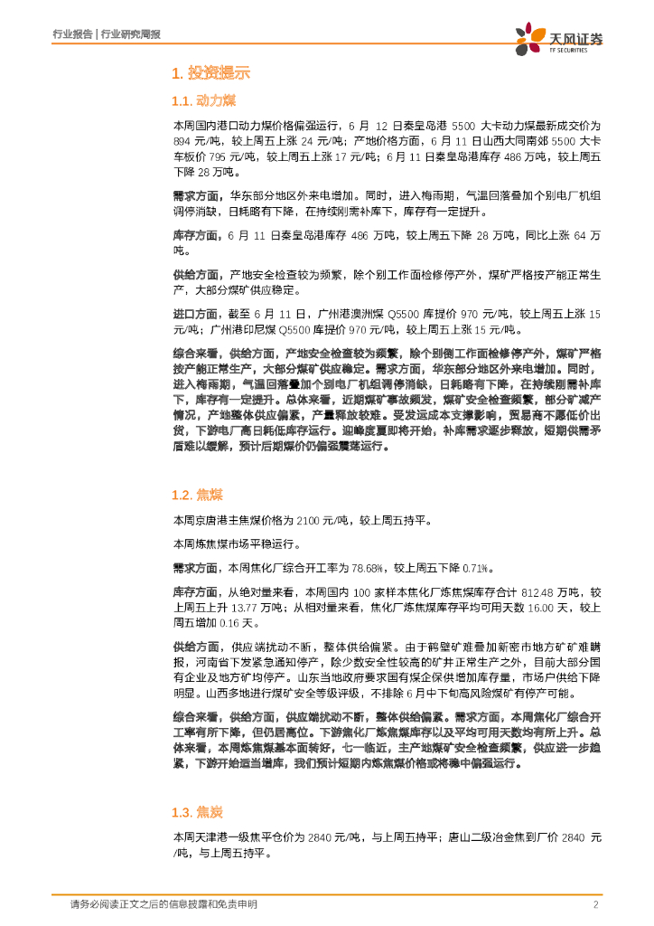 天风证券:煤炭开采行业研究周报:一周煤炭动向:供给偏紧下煤价持续高位,看好煤炭板块投资机会.pdf