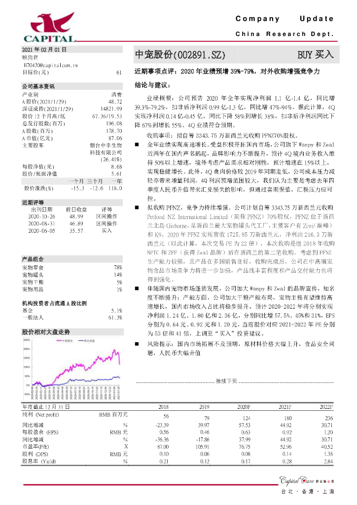 群益证券:中宠股份(002891)-近期事项点评:2020年业绩预增39%-79%,对外收购增强竞争力.pdf