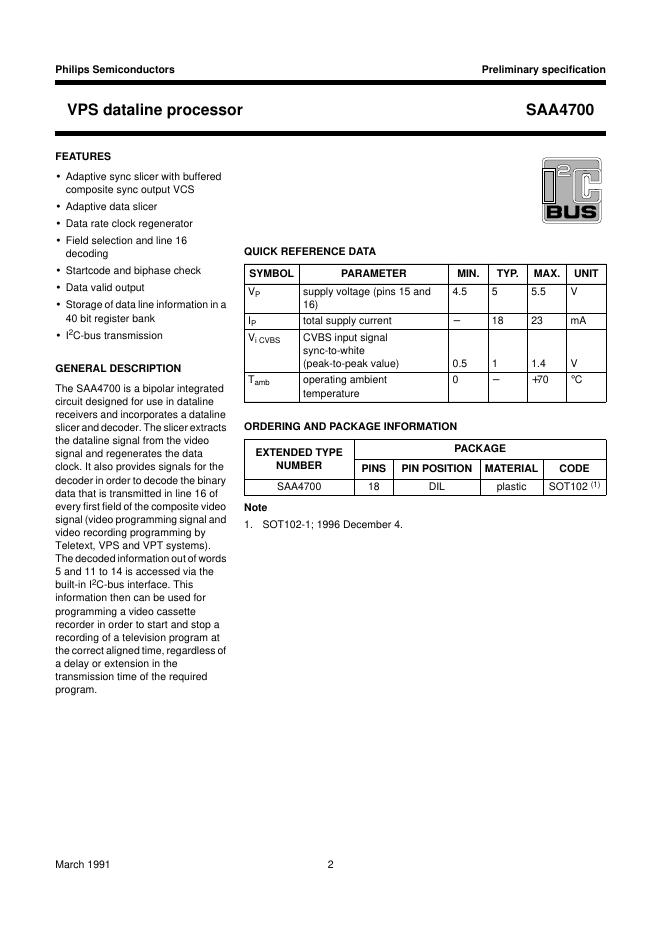 PHILIPS SAA4700 VPS dataline processor 数据手册.pdf