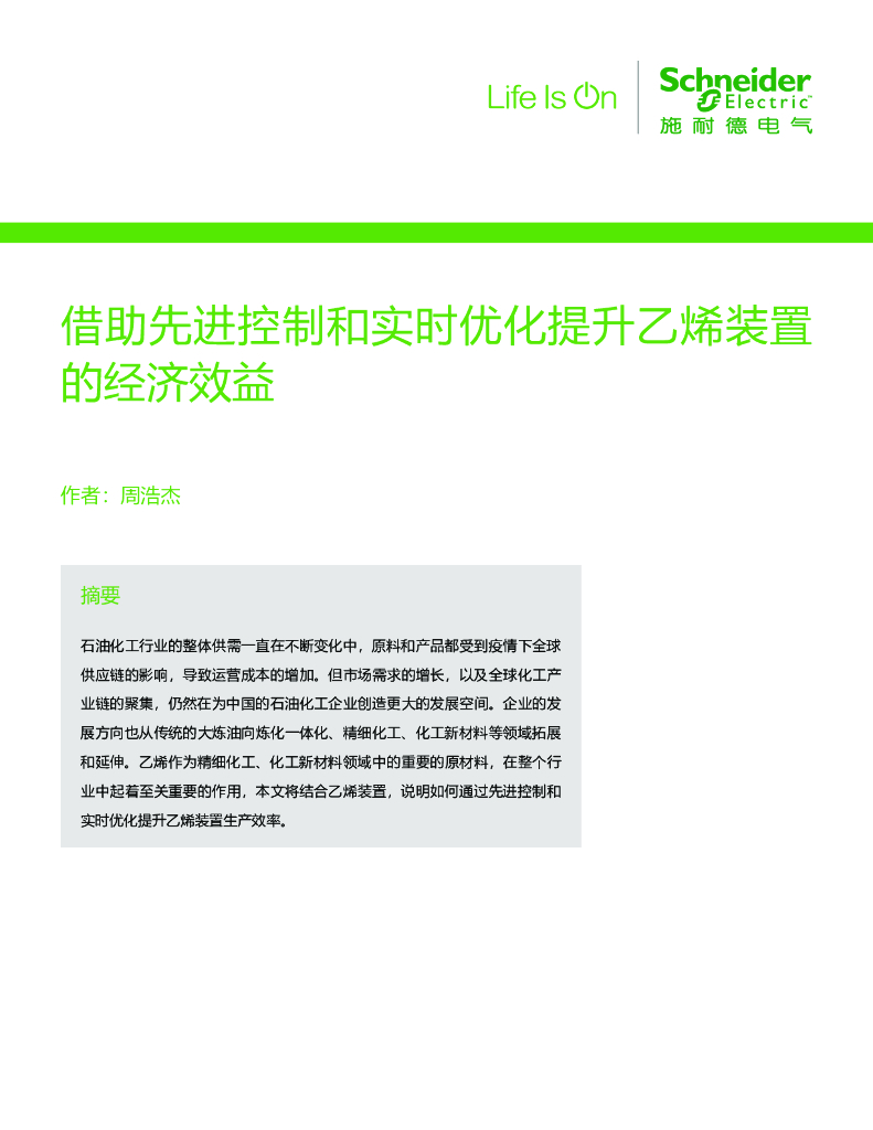 施耐德电气:化工油气行业应用白皮书——借助先进控制和实时优化+提升乙烯装置的经济效益.pdf