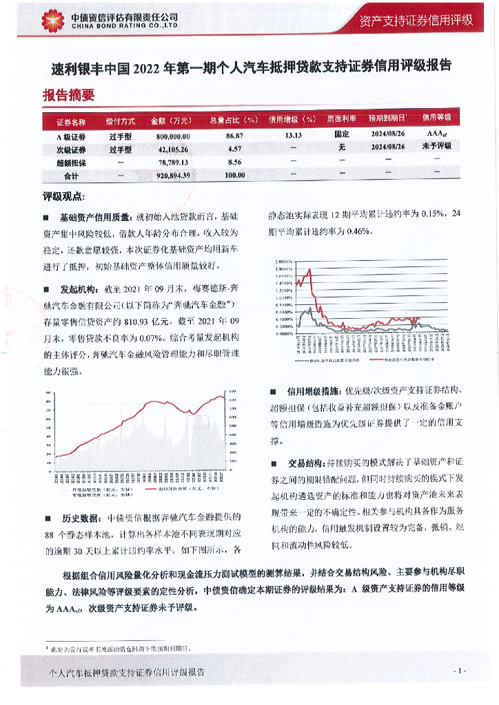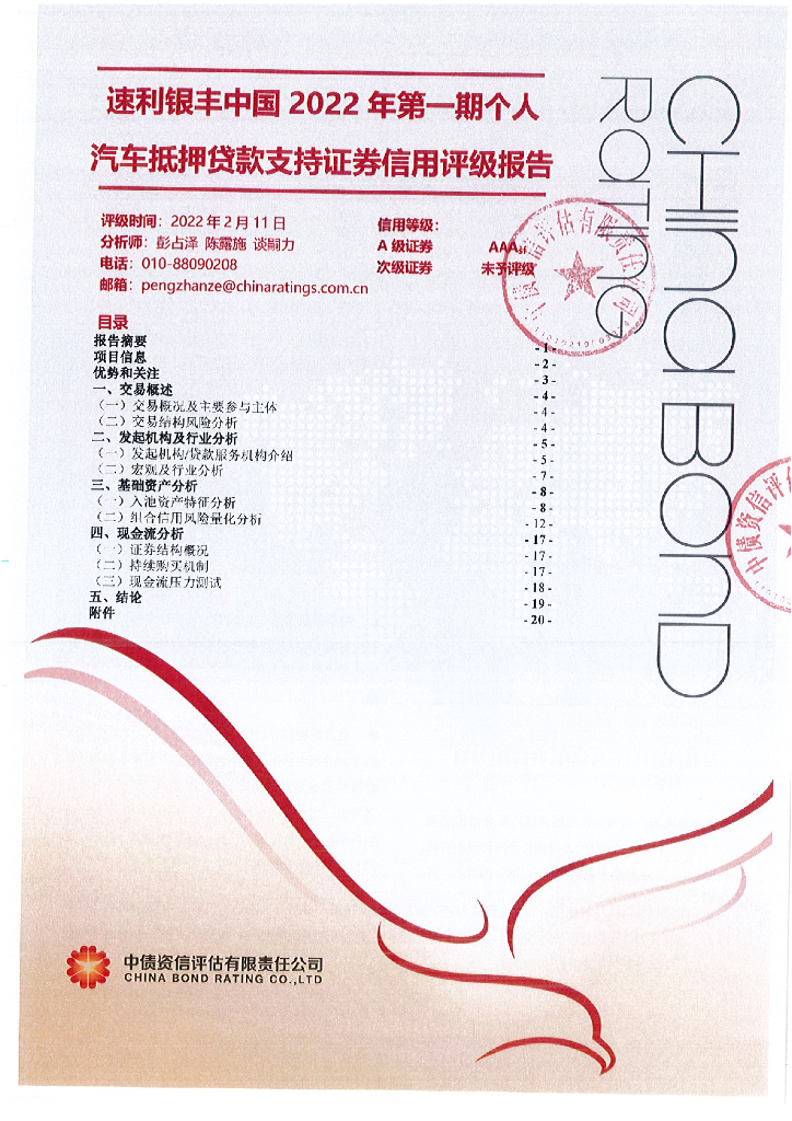 中债资信:速利银丰中国2022年第一期个人汽车抵押贷款支持证券信用评级报告.pdf
