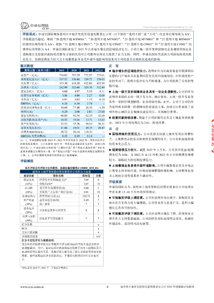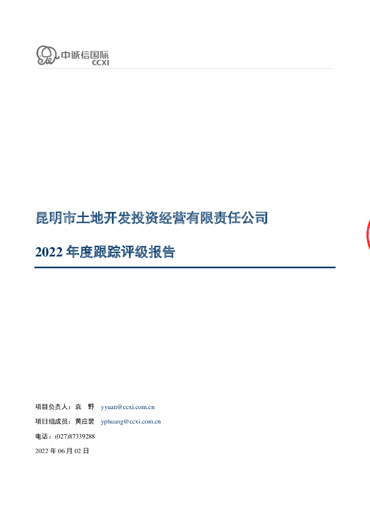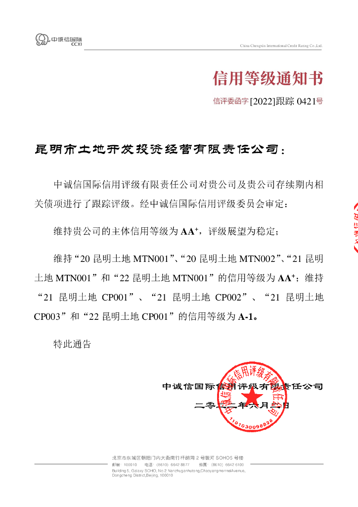 中诚信:昆明市土地开发投资经营有限责任公司2022年度跟踪评级报告.pdf