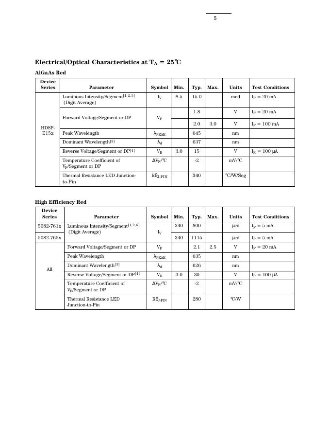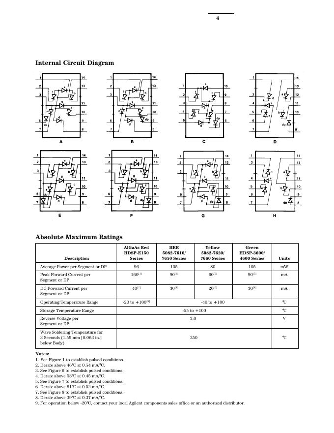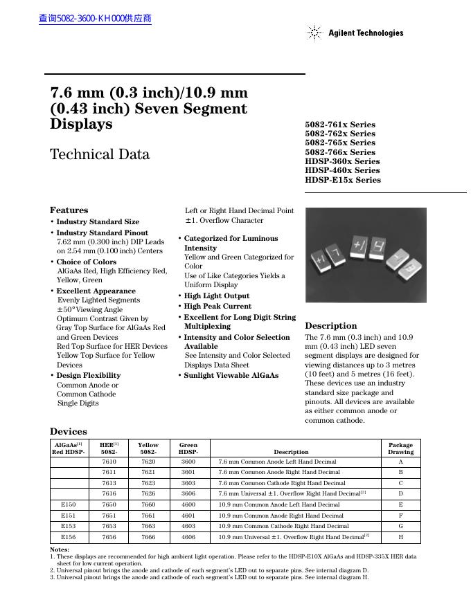 Agilent Technologies 5082-761x Series, 5082-762x Series, 5082-765x Series, 5082-766x Series, HDSP-360x Series, HDSP-460x Series, HDSP-E15x Series 数据手册.pdf