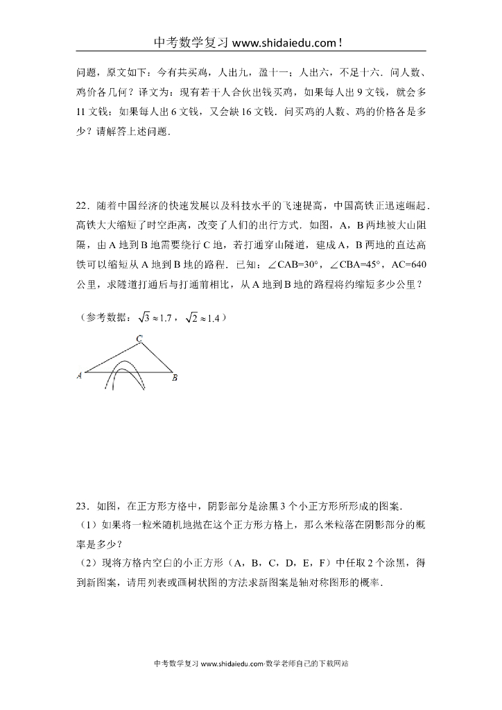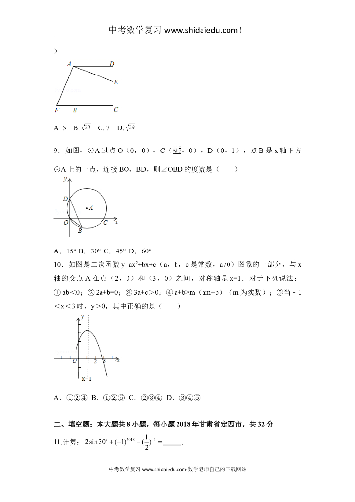 甘肃省临夏州、白银市、定西市中考数学试卷(含答案解析).doc