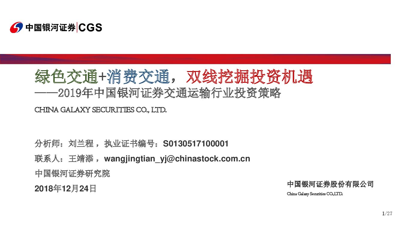 中国银河:2019年中国银河证券交通运输行业投资策略:绿色交通+消费交通,双线挖掘投资机遇.pdf