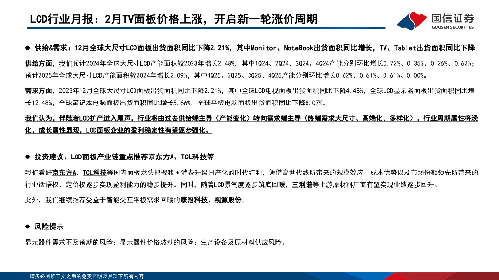 国信证券:LCD行业2月报:2月TV面板价格上涨,开启新一轮涨价周期.pdf
