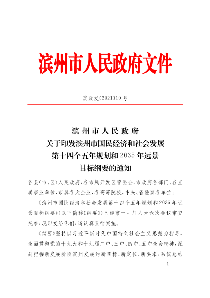 滨州市国民经济和社会发展 第十四个五年规划和2035年远景目标纲要.pdf