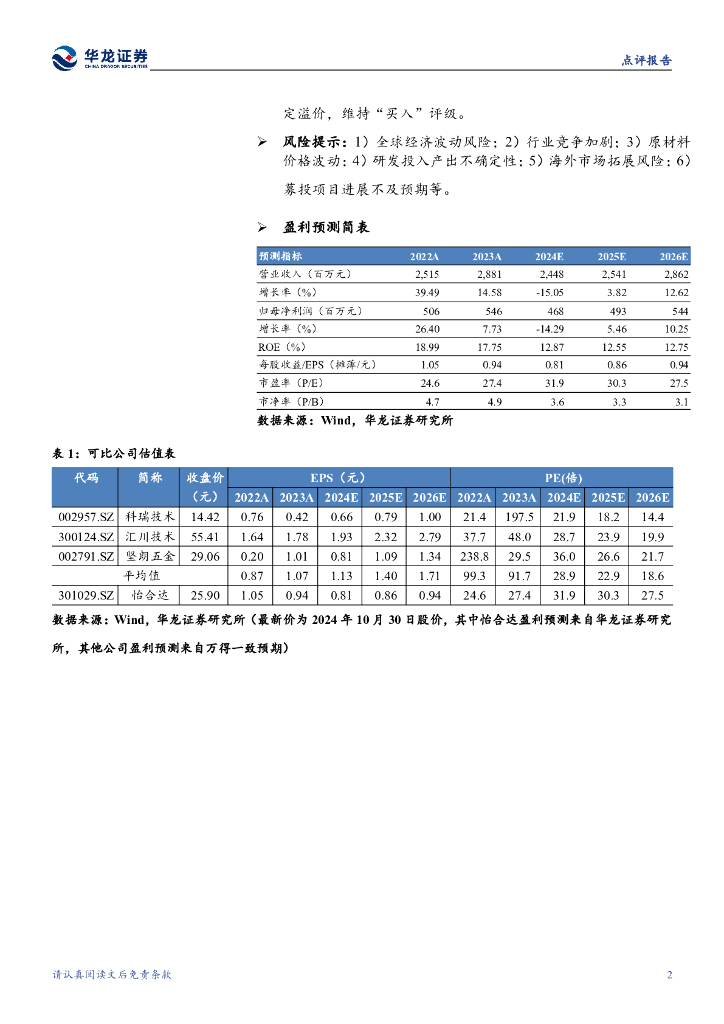 华龙证券:怡合达(301029)-2024年三季报点评报告:24Q3利润增速转正,业绩有望筑底回升.pdf