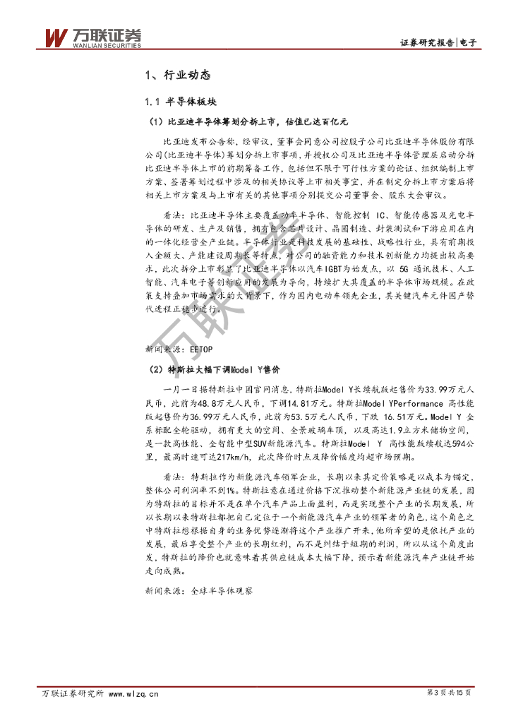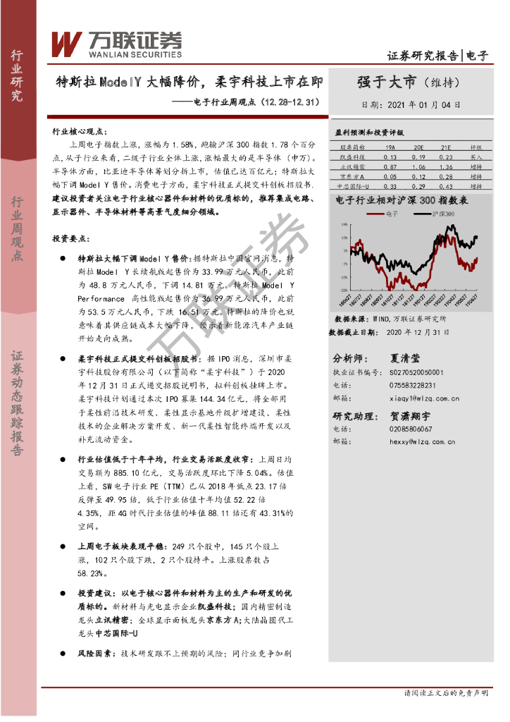 万联证券:电子行业周观点:特斯拉ModelY大幅降价,柔宇科技上市在即.pdf