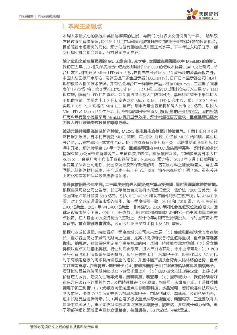 天风证券:电子制造行业研究周报:贸易摩擦缓和,创新与周期共振.pdf